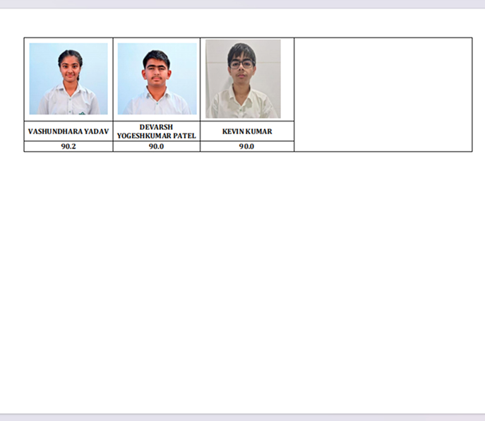 | AADARSH DEORA 93.80 % | SRISHTI SEHGAL 91 % | JINAL JAIN 87.40 % |