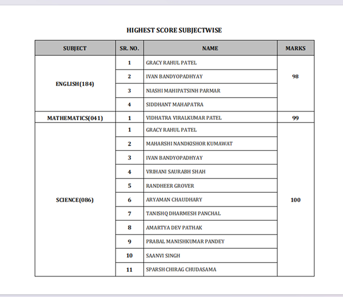 | HIGHEST SCORE SUBJECTWISE | ||
