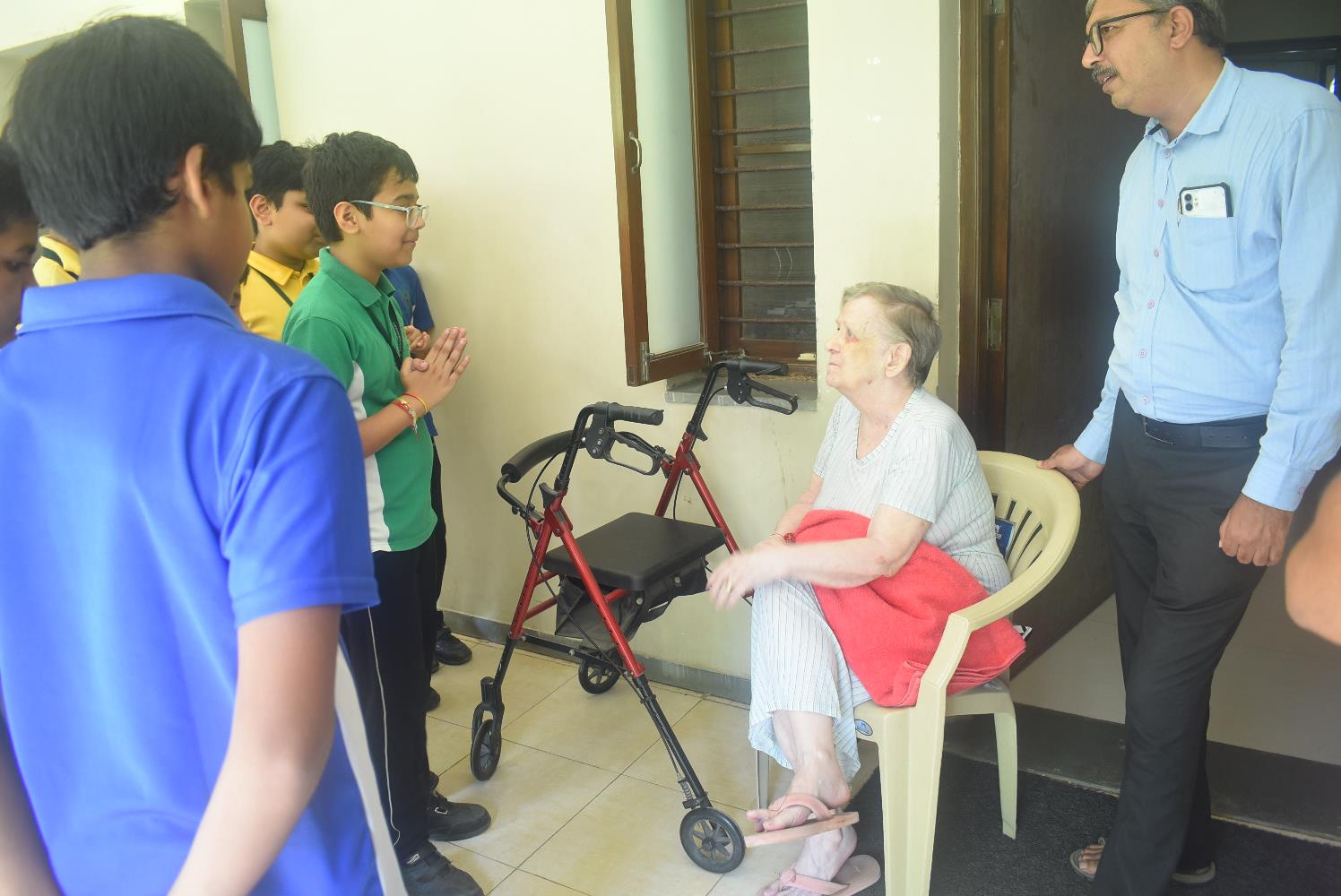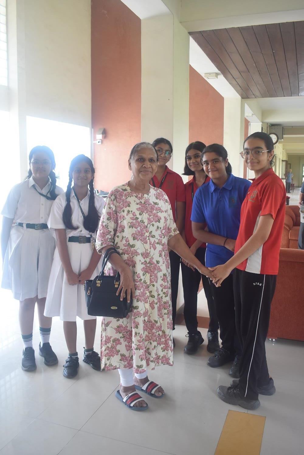 As part of the school’s CSR-driven community outreach initiative, a group of 50 students from Classes VI to VIII, accompanied by their teachers, visited Shantiniketan Senior Living on Tuesday, 23 September 2025. The objective of the visit was to interact with the elderly residents, listen to their life stories, learn from their rich experiences, and gain a deeper understanding of the challenges they encounter in their daily lives. The meaningful interaction fostered a greater sense of empathy, gratitude, and social responsibility among the students, emphasizing the vital role of caring for senior citizens within our communities.